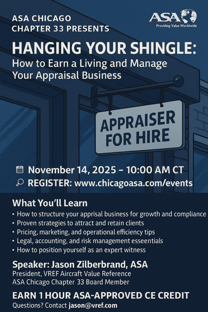 Speaker:Jason Zilberbrand, ASA, Presient, VREF Aircraft Value Reference | ASA Chicago Chapter 33 Board Member
